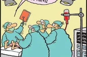 The word bubble is cut off, but I can imagine what they're saying. I wonder what the patient is thinking? suggestions, Splinter ?