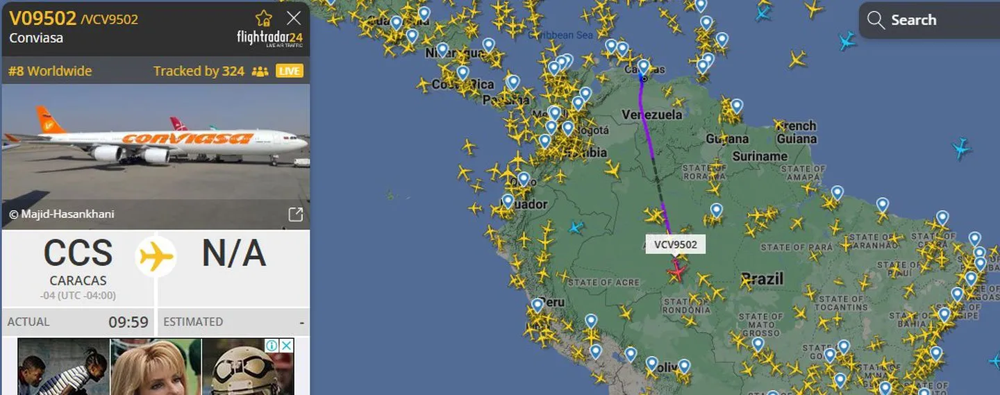 A weird huge plane from Venezuela came from Iran with a venezuelan crew (6) and the extraoridnary number of 19 iranians justo to carry what they said it was car parts.